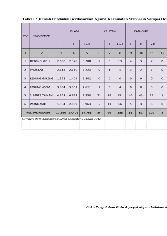 Tabel 17 Jumlah Penduduk Berdasarkan Agama Kecamatan Wonoasih Sampai Desember 2018