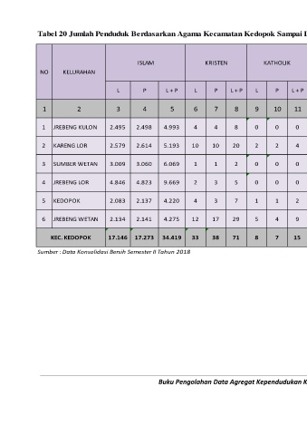 Tabel 20 Jumlah Penduduk Berdasarkan Agama Kecamatan Kedopok Sampai Desember 2018
