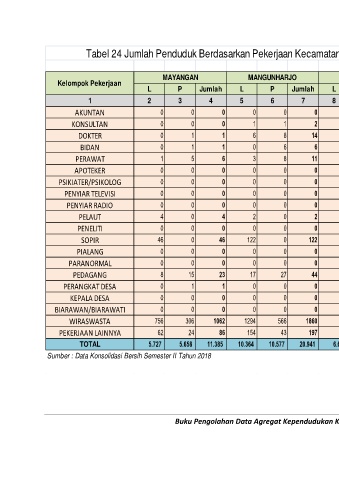 Tabel 24 Jumlah Penduduk Berdasarkan Pekerjaan Kecamatan Mayangan Sampai Desember Tahun 2018 (Lanjutan)