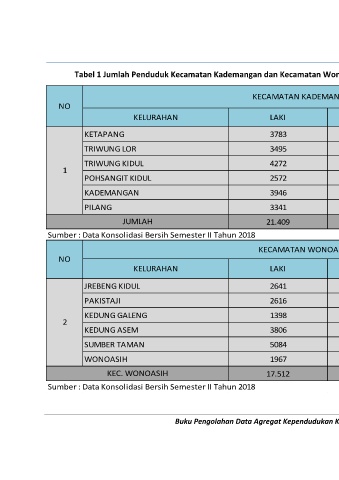 Tabel 1 Jumlah Penduduk Kecamatan Kademangan dan Kecamatan Wonoasih Sampai Tahun 2018