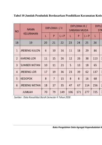 Tabel 10 Jumlah Penduduk Berdasarkan Pendidikan Kecamatan Kedopok Kota Probolinggo Sampai Tahun 2018 (Lanjutan)