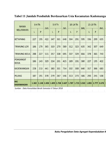 Tabel 11 Jumlah Penduduk Berdasarkan Usia Kecamatan Kademangan Sampai Desember 2018