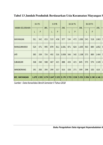 Tabel 13 Jumlah Penduduk Berdasarkan Usia Kecamatan Mayangan Sampai Desember 2018