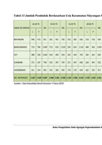 Tabel 13 Jumlah Penduduk Berdasarkan Usia Kecamatan Mayangan Sampai Desember 2018 (Lanjutan)
