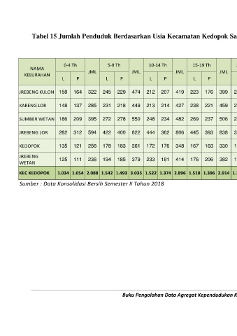 Tabel 15 Jumlah Penduduk Berdasarkan Usia Kecamatan Kedopok Sampai Desember 2018