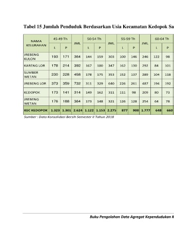Tabel 15 Jumlah Penduduk Berdasarkan Usia Kecamatan Kedopok Sampai Desember 2018 (Lanjutan)