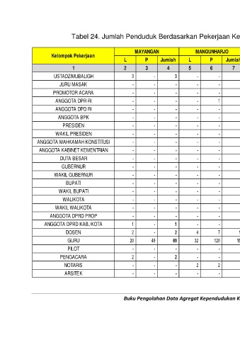 Tabel 24. Jumlah Penduduk Berdasarkan Pekerjaan Kecamatan Mayangan Semester 1 Tahun 2020 (Lanjutan)
