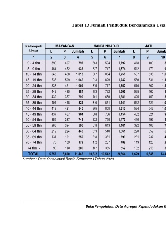 Tabel 13 Jumlah Penduduk Berdasarkan Usia Kecamatan Mayangan Semester I Tahun 2020