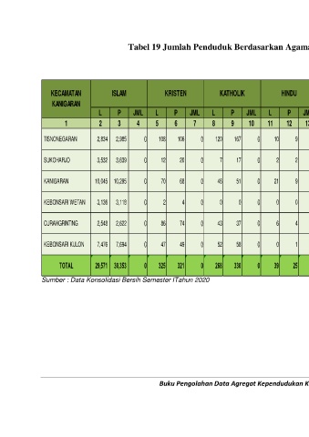 Tabel 19 Jumlah Penduduk Berdasarkan Agama Kecamatan Kanigaran Semester I Tahun 2020