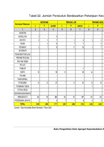 Tabel 22. Jumlah Penduduk Berdasarkan Pekerjaan Kecamatan Kademangan Semester 1 Tahun 2020 (Lanjutan)