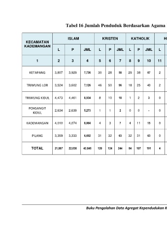 Tabel 16 Jumlah Penduduk Berdasarkan Agama Kecamatan Kademangan Semester II Tahun 2020