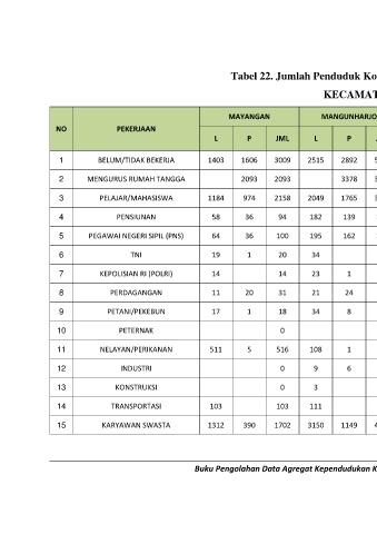 Tabel 22. Jumlah Penduduk Kota Probolinggo berdasarkan Pekerjaan