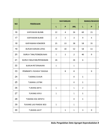 20 BURUH TANI/PERKEBUNAN 1 1 2 40 9 49 6 2 8 8 3 11 8 8