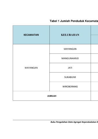 Tabel 1 Jumlah Penduduk Kecamatan Mayangan Semester II Tahun 2020