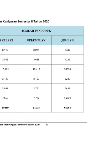 Buku Pengolahan Data Agregat Kependudukan Kota Probolinggo Semester II Tahun 2020 61