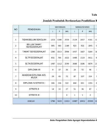 Jumlah Penduduk Berdasarkan Pendidikan Kecamatan Mayangan Semester I Tahun 2021
