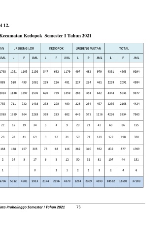 Buku Pengolahan Data Agregat Kependudukan Kota Probolinggo Semester I Tahun 2021 73