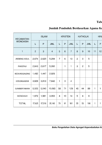 Jumlah Penduduk Berdasarkan Agama Kecamatan Wonoasih Semester I Tahun 2021