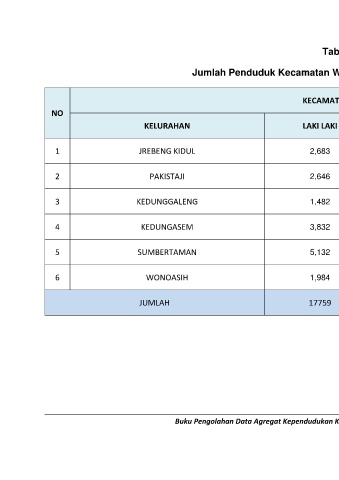 Jumlah Penduduk Kecamatan Wonoasih Semester I Tahun 2021