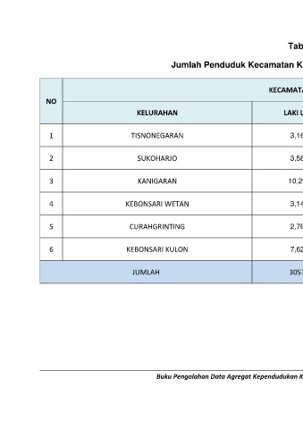 Jumlah Penduduk Kecamatan Kanigaran Semester I Tahun 2021
