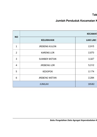 KELURAHAN LAKI LAKI PEREMPUAN JUMLAH