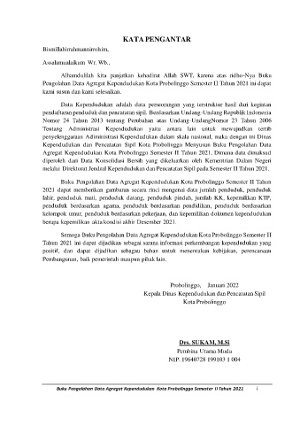 Buku Pengolahan Data Agregat Kependudukan Kota Probolinggo Semester II Tahun 2021 i