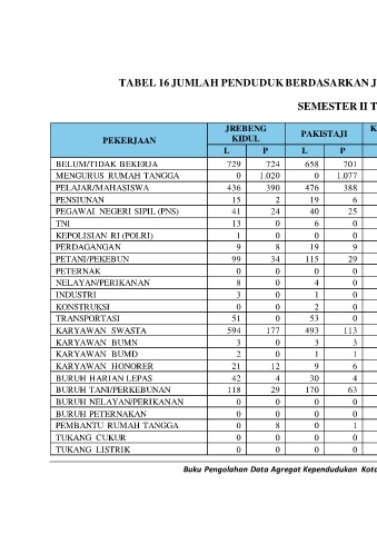TABEL 16 JUMLAH PENDUDUK BERDASARKAN JENIS PEKERJAAN KECAMATAN WONOASIH