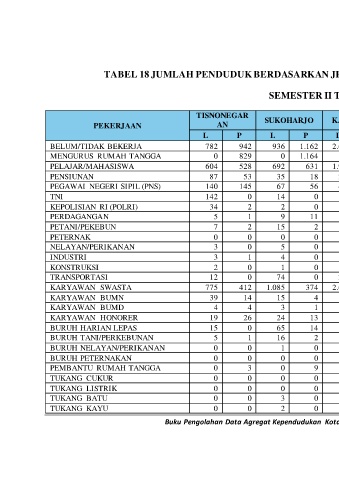 TABEL 18 JUMLAH PENDUDUK BERDASARKAN JENIS PEKERJAAN KECAMATAN KANIGARAN