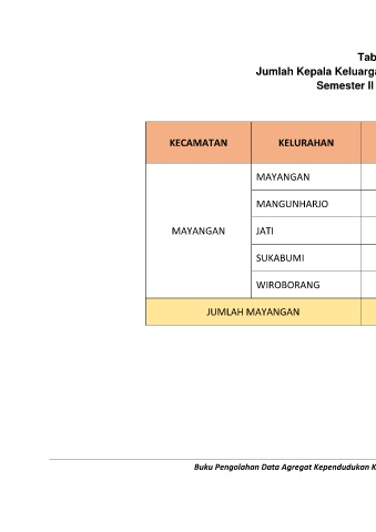 Jumlah Kepala Keluarga Kecamatan Mayangan