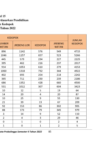 Buku Pengolahan Data Agregat Kependudukan Kota Probolinggo Semester II Tahun 2022 85