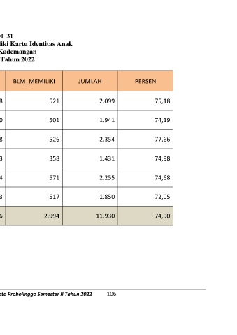 Buku Pengolahan Data Agregat Kependudukan Kota Probolinggo Semester II Tahun 2022 106