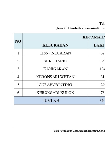 Jumlah Penduduk Kecamatan Kanigaran Semester I Tahun 2021