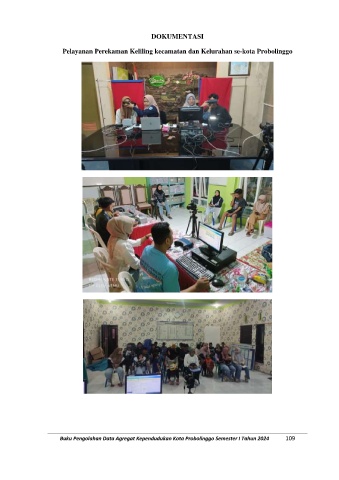 DOKUMENTASI Pelayanan Perekaman Keliling kecamatan dan Kelurahan se-kota Probolinggo Buku Pengolahan Data Agregat Kependudukan Kota Probolinggo Semester I Tahun 2024 109
