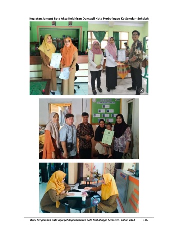 Kegiatan Jemput Bola Akte Kelahiran Dukcapil Kota Probolinggo Ke Sekolah-Sekolah Buku Pengolahan Data Agregat Kependudukan Kota Probolinggo Semester I Tahun 2024 116