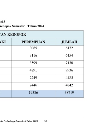 Buku Pengolahan Data Agregat Kependudukan Kota Probolinggo Semester I Tahun 2024 50