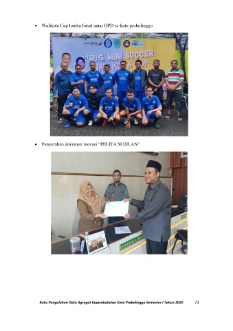 • Walikota Cup lomba futsal antar OPD se-kota probolinggo • Penyerahan dokumen inovasi “PELITA SI DILAN” Buku Pengolahan Data Agregat Kependudukan Kota Probolinggo Semester I Tahun 2025 73