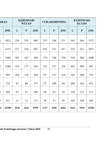Buku Pengolahan Data Agregat Kependudukan Kota Probolinggo Semester I Tahun 2025 47