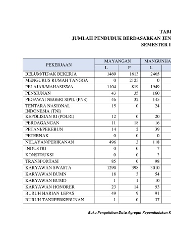 JUMLAH PENDUDUK BERDASARKAN JENIS PEKERJAAN KECAMATAN MAYANGAN