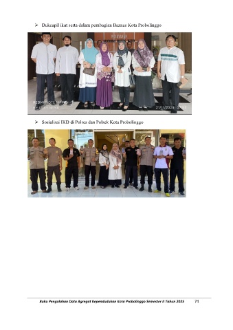 ➢ Dukcapil ikut serta dalam pembagian Baznas Kota Probolinggo ➢ Sosialisai IKD di Polres dan Polsek Kota Probolinggo Buku Pengolahan Data Agregat Kependudukan Kota Probolinggo Semester II Tahun 2025 74