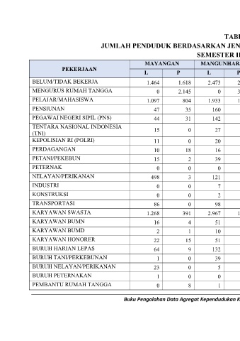 JUMLAH PENDUDUK BERDASARKAN JENIS PEKERJAAN KECAMATAN MAYANGAN